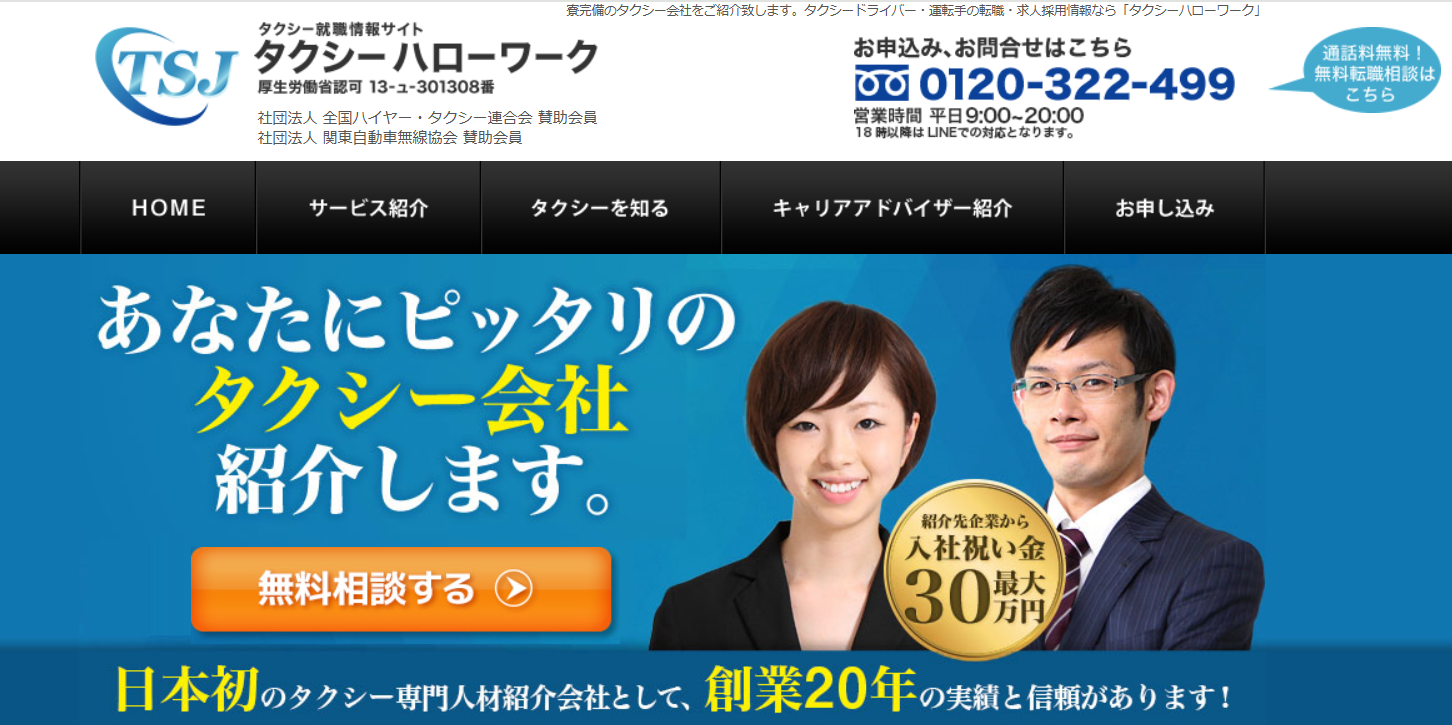 サービス名 | タクシー会社専門の人材求人会社(TSJ)、「タクシーハローワーク」 |