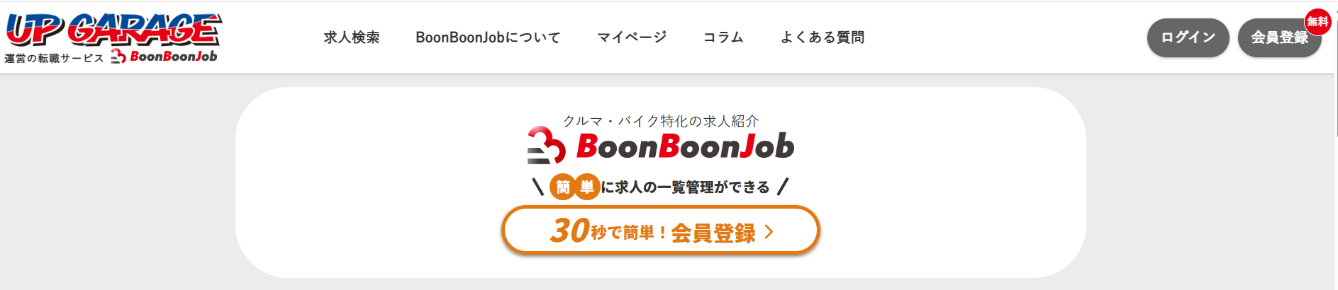 BoonBoonJob | 自動車業界全般(整備・板金・営業・ドライバーなど) | 全国 | 業界特化/条件で細かく検索/厚労省許可の安心運営 | 無料 |