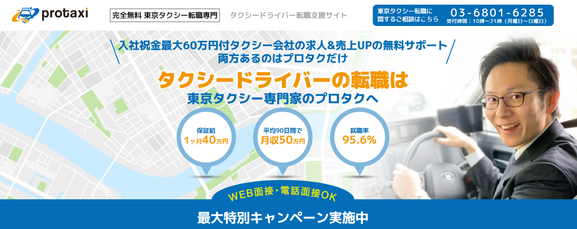 「プロタク」は、東京エリアのタクシードライバー転職を専門的に支援する完全無料サービスです。