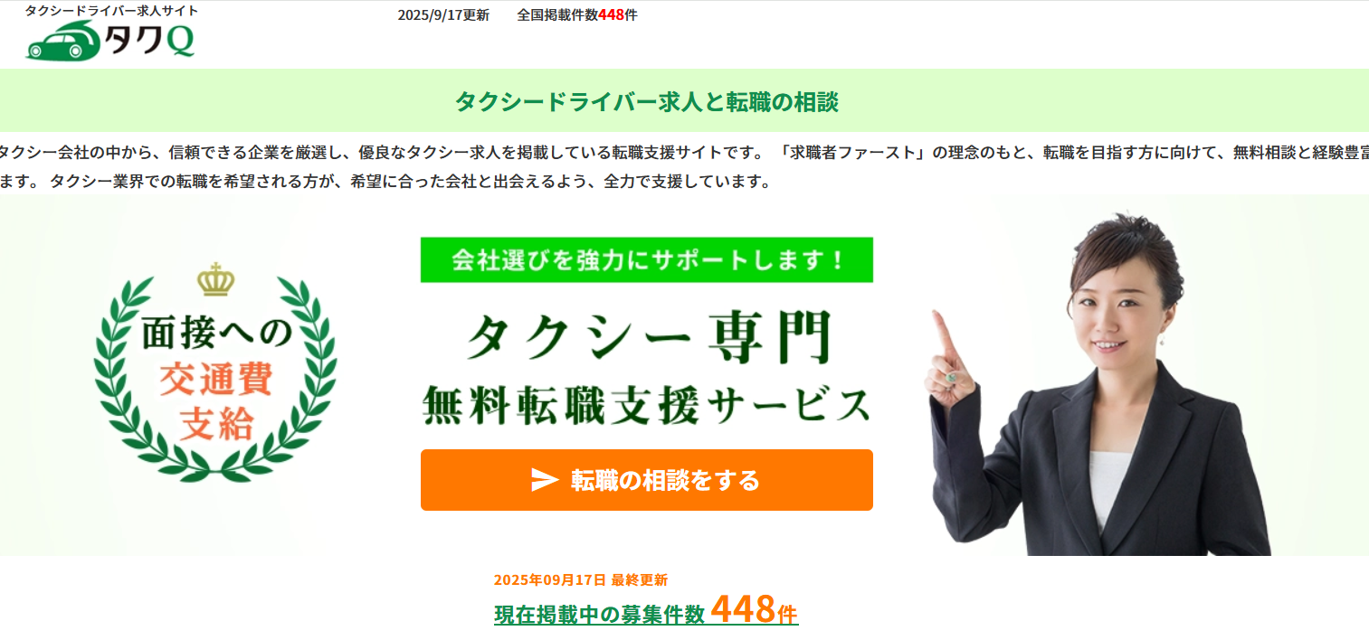 全国の大手・優良企業の求人を厳選して掲載する、タクシー業界専門の求人・転職支援サイトで、2013年の開設以来10年以上の信頼を築いています。